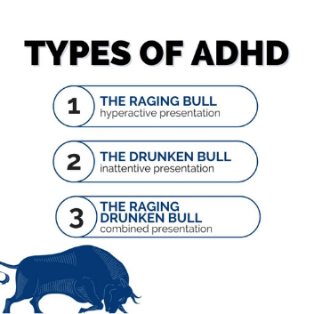 Conversely, the “drunken bull” child is a type of ADHD that doesn’t really display any hyperactivity or impulsiveness but simply gets easily distracted, off track, and disorganized. This type of ADHD doesn’t really show up until the child is a bit older and often, this child is thought of as just being lazy and unmotivated.